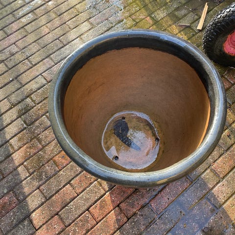 Gammel havekrukke, kan minde om sandsten, men det er det ikke. Støbt, let materiale.