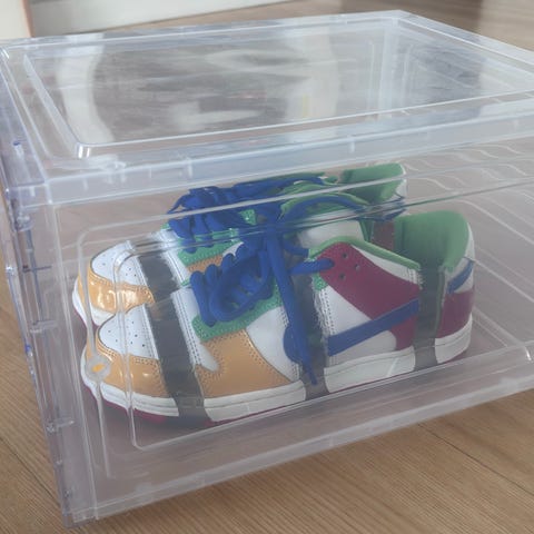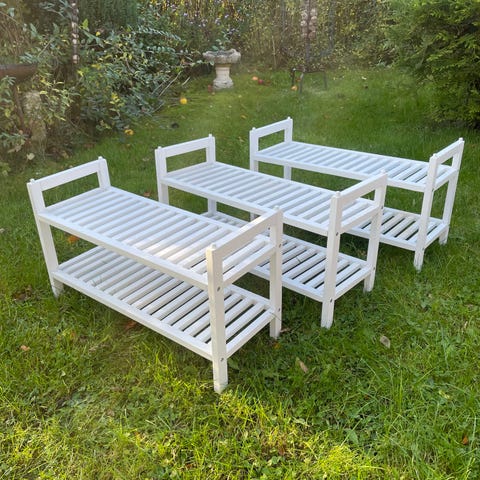 Praktisk skohylde i 100% polyester med 4 hylder til sko eller andet fx legetøj.