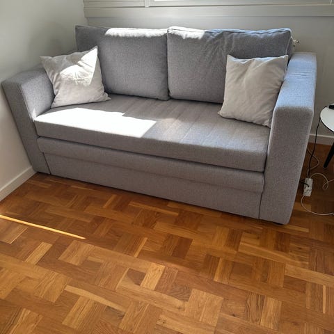 Sovesofa, 3 pers. , Engell, Super flot sofa i lyst stof med lyst træ skelet.
