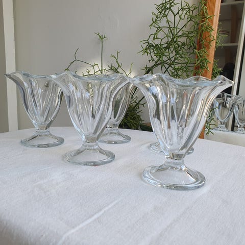 2 fine dessertglas eller isglas i tungt formpresset glas. Fine som nye.