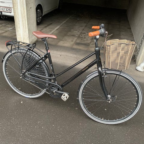 - Støtteben, håndbremse, lygter og kurv medfølger.