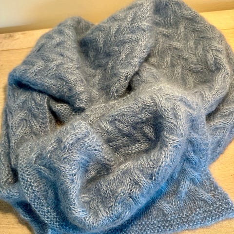 Ultraflot håndlavet halstørklæde i super lækker blød merino og silkmohair. Halstørklædet er strikket som et rør og er 208 cm langt og 25 bredt. Aldrig brugt.