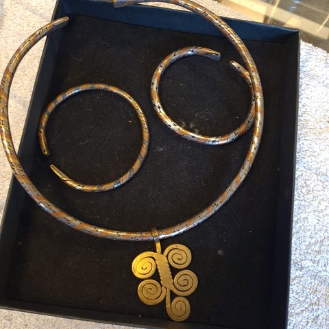 Meget specielt halssmykke fra Cuba. Kobber og messing.