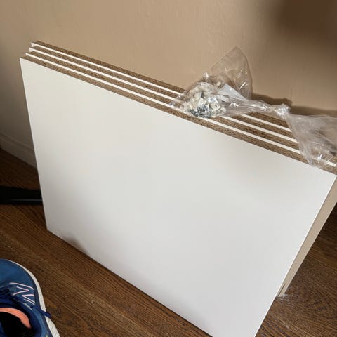 6 stk Ikea hylder kompliment 18 mm hvid. bredde 71,1 dybde 57,3 aldrig brugt er stadig indpakket i folie 50 kr pr stk