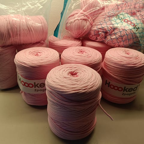 2 ruller Hooked Zpagetti T-shirt Garn fra røgfrit hjem. Måler minimum 120m.