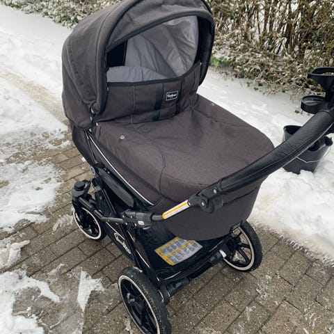 Det indvendige liggemål i barnevognsdelen er ca. 80 cm. Liggemålet er en del længere i klapvognsdelen - som også kan lægges helt ned. Så det er nemt at lægge et lidt større siddende barn ned til en lur, hvis barnet fx. måtte blive træt på turen. Brugte kun barnevognskassen da min søn var helt lille, og derefter klapvognsdelen, hvor der også både er en tynd og en varmere “overtræksdel/pose”, der kan lukke af til benene. Kalechen kan flyttes fra barnevognskassen til klapvognsdelen, og klapvognsdelen kan vende begge veje (mod styret og væk fra styret).