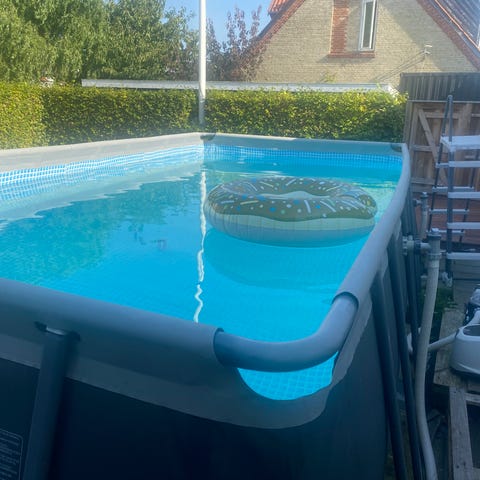 Der medfølger derudover stige og ekstra helt nye ben til poolrammen.