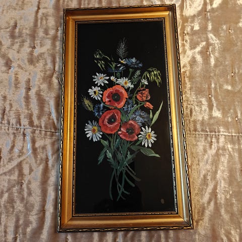 Smukt gammelt ovalt billede / glas med tørrede blomster.
