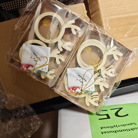 De fineste små sølvfarvede metal bordkort holdere, som forestiller små ænder og små æbler. Der er 6 af hver og de sælges kun samlet