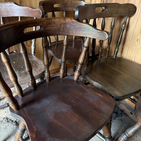 Der er 4 stole, pris pr. stk. 1000kr. Kan uden videre bruges som de er.