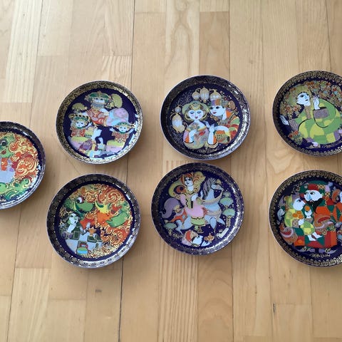 7 fine platter fra Bjørn Wiinblad. Aladdin serien. Flot stand. Alle monteret med vægophæng. Sælges samlet