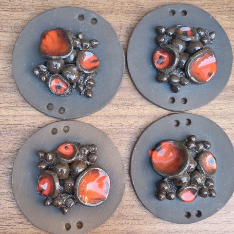 Stentøj, Klokker til ophængning, Kunsthåndværk, Fine lerklokker til ophængning. Brunt ler/stentøj med blålig/gråbrun glasur. Kan “ringe”. Retro fra 70’erne/80’erne. Fremstår i flot stand. Kunsthåndværk fra keramikværksted. Samlet pris 125kr.