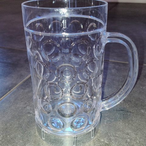 Ølkrus fakance med låg og med indbygget spilledåse i bunden som virker. Højde 29,5