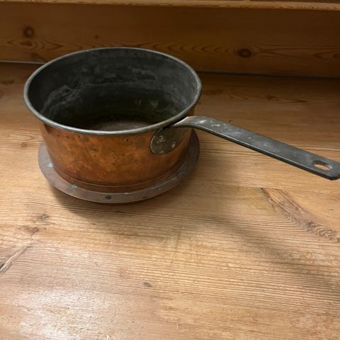 Gammel Kobberkasserolle. Jeg bruger mine til blomster og de kan stå ude hele året. Diameter ca 24 cm og højde ca 13 cm. Sælges i Hillerød