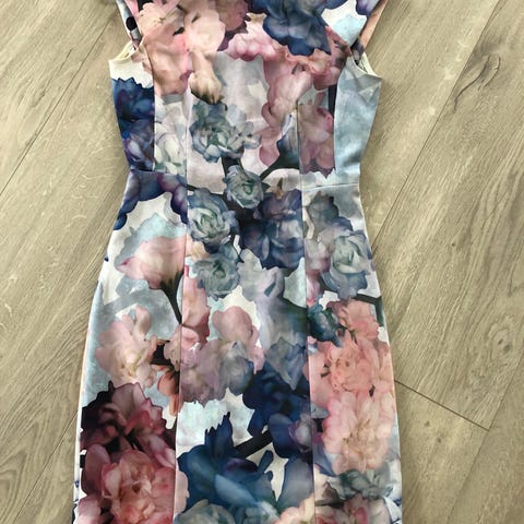 Smuk blomstret sommerkjole med åbent ryg str 42/44 i flot stand