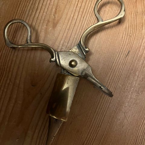 Antikke messing stearinlys sakse / stearinlys stoppere. Længde ca 17 cm. Sælges i Hillerød