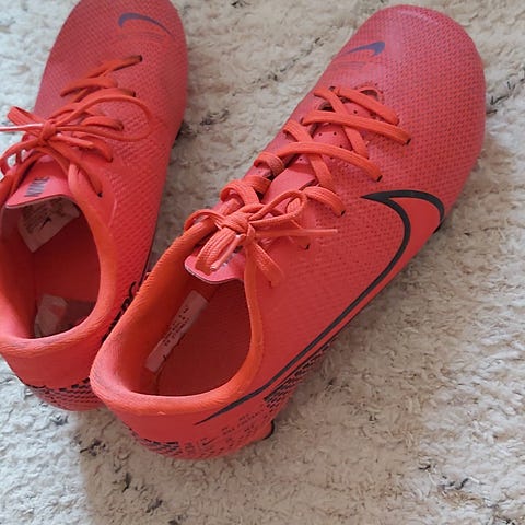 Fodboldsko, Nike, str. 40, Skoene er med sorte prikker på hvid bund. Bløde og lette. Klassiske med orange logo.
