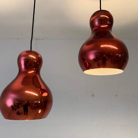 Pendel, Calabash, To skønne lamper i farven sølv. Den ene er meget fin. Den anden har nogle små skrammer på den ene side men da vores har hængt mod en væg har man ikke kunne se dem.