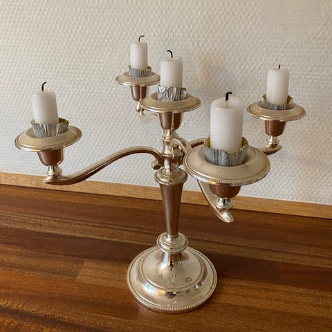 Lysestager, Smukke femarmet lysestager ialt 2stk 450 kr pr stk.