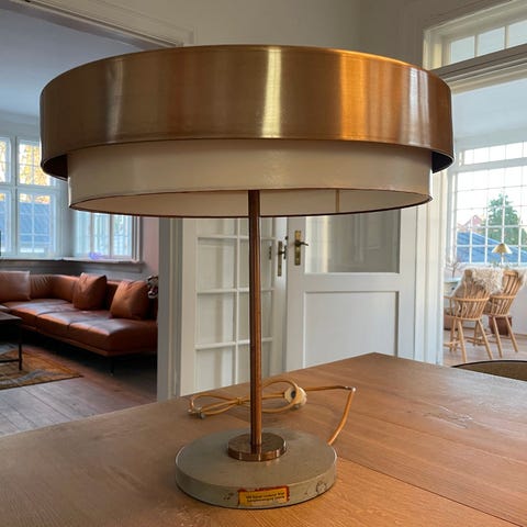 Skøn sjælden antik messing/kobber bordlampe fra 1920’erne