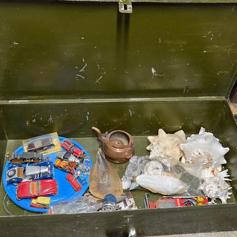 Militær, Skab /Toiletskab, Militærkasse fra Danmark. Har været brugt som skab / toiletskab. Fremstår i original stand. B 43. D 20 H 87.