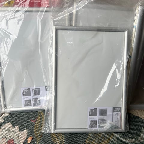 Sort træramme med rigtigt glas samt fod, så det både kan stå og hænge