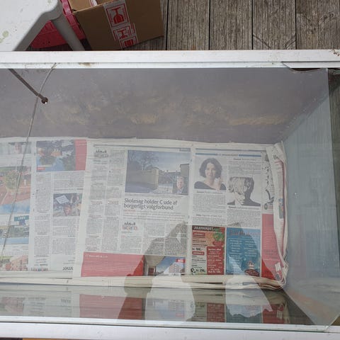 Målene på akvariet er: b: 130 cm h: 50 cm d: 50 cm
