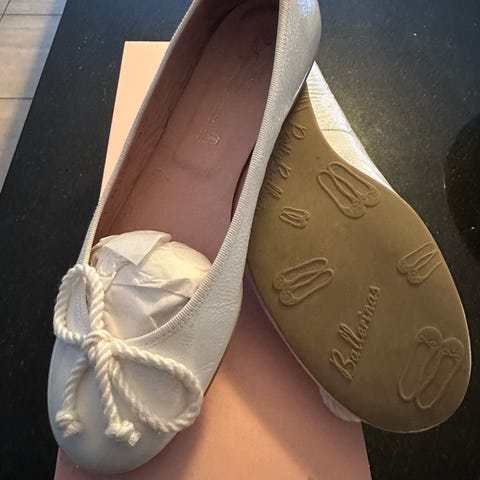Smukke enkle ballerinaer i blødt læder fra mærket carysma. Skoene er str. 39, dog lidt små i størrelsen, synes jeg. En str. 38 kan også passe.