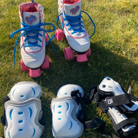Rio Roller Rulleskøjter str. 34. Brugt, men ikke ret meget. Har lidt brugsspor, men er i virkelig god stand. Købspris var 750 kr. i SkatePro.