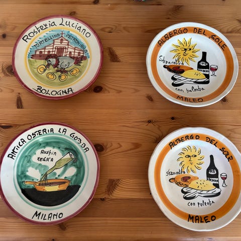 Flotte vintage pizza tallerkener 6 stk med motiv