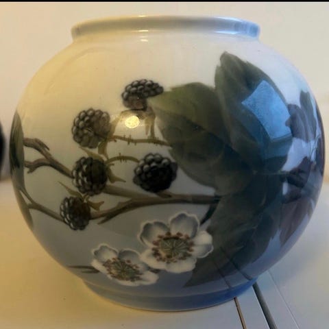 Vase med brombær blomster, Royal Copenhagen