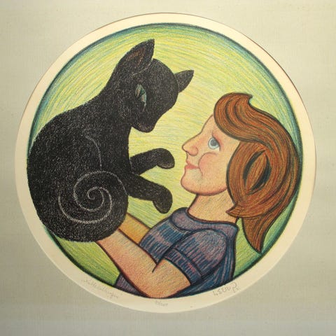 Heerup Farvelitografi “ Pigen og katten” - evt leveres.