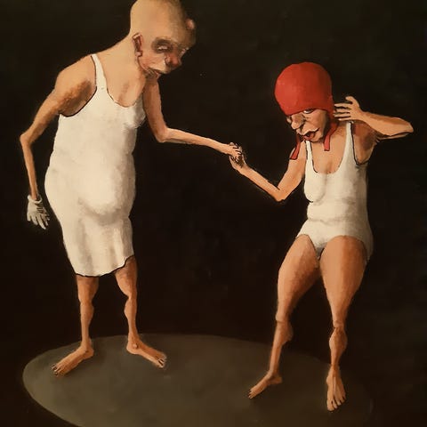 Andet, Poul steen, stil: Andet, b: Ca 84 h: Ca94, Poul Steen maleri. I sølv farver svæveramme. Har en lille bitte bule over den blå hue. Kan næsten ikke se den. Hvis man vil koster det 1500kr at få reparere hos en konvesater. Prisen er sat der efter. Sendes ikke. (Fra dyre og røgfri hjem)