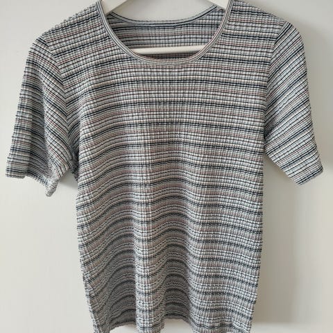 Lækker t-shirt med 3/4 ærmer og hvidt mønster med lidt pailletter.