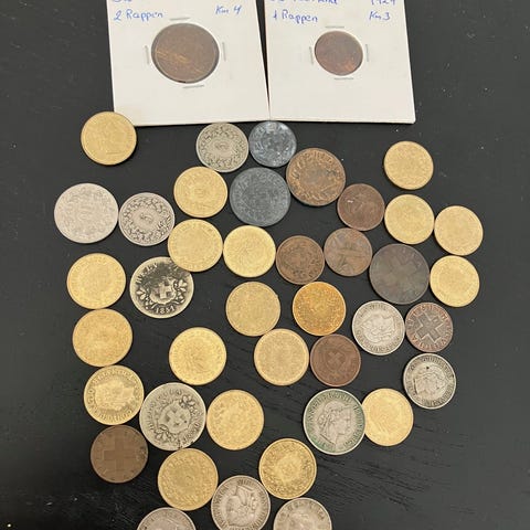 Jeg sælger denne samling mønter fra Schweitz fra perioden 1912-1974, i alt 90 mønter.