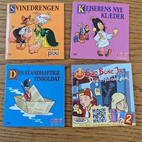 I bogen optræder bl.a. Klods Hans, de tre bukke bruse, Cirkeline og Rasmus Klump – sammen med en masse andre der skal til fødselsdag i den gamle boghandel.