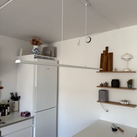 Der medfølger et kit så lampen kan laves om fra loftlampe til pendel.