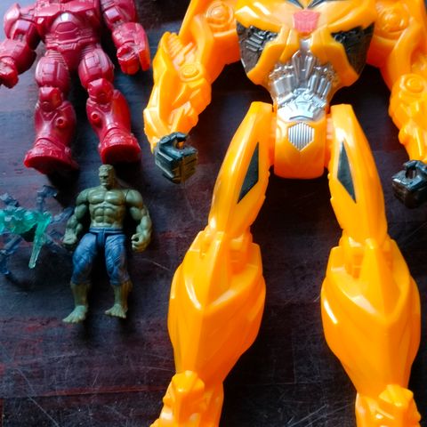 Figur, biler og helikopter.