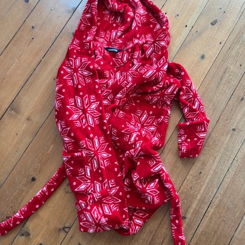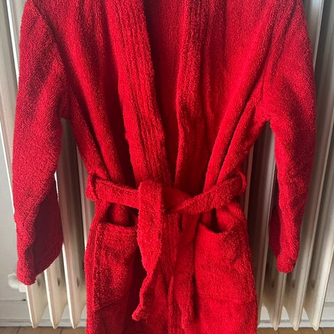 Rigtig lækker tyk bomulds badekåbe i mørkeblå og rød. (Str. 8 år).