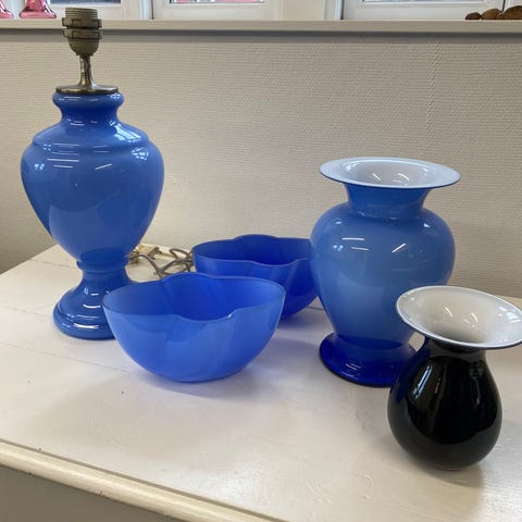 Holmegaard lampe m. skærm og 2 vaser sælges samlet. Fast pris. Sendes ikke.