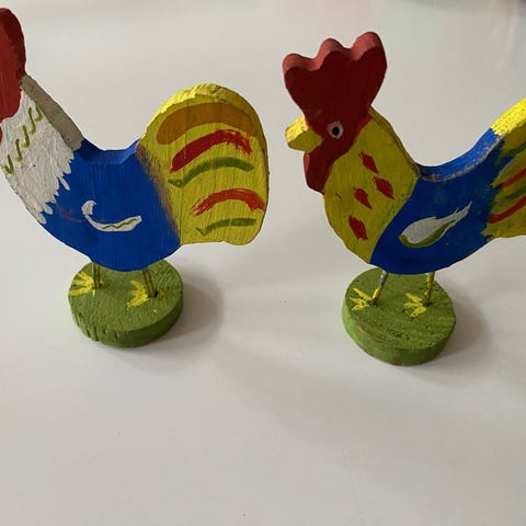 2 stk. retro haner i træ, de er i pæn stand, og er fra en gang i 1970´erne