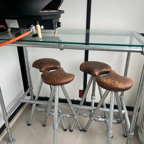 Sælger dette super flotte rustikke barbord på hjul. Stellet er lavet af en smed.