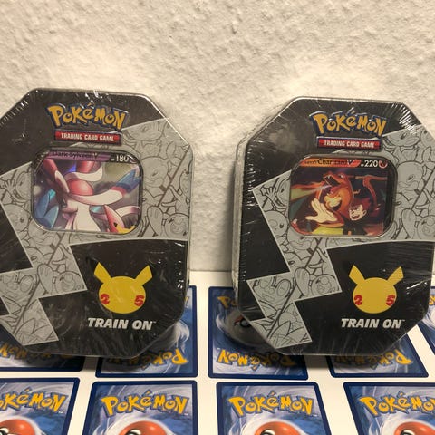 Sælger en flot Pokémon Tin fra efteråret 2021 med Dark Sylveon V – en del af den eksklusive 25-års jubilæumsserie! sjælden!