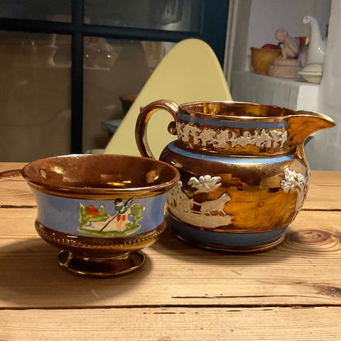 Lyster, Kop og kande i fin stand. Speciel størrelse.