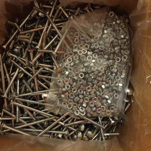 3,5 kg bolte, møtrikker, spændskiver, vingemøtrik sælges samlet