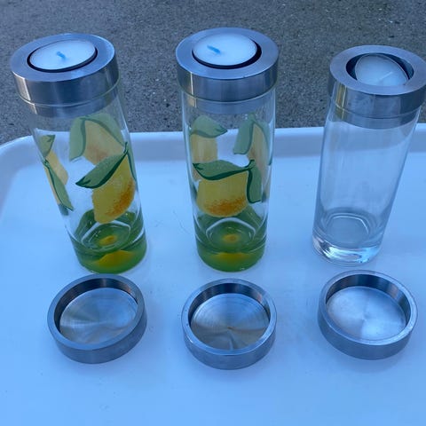 Med remote og friske batterier. Lavet i stearin som jeg har klippet til for at de passer. Buden kan godt finde på at falde ud af dem når du skifter batteri, det har ingen betydning.
