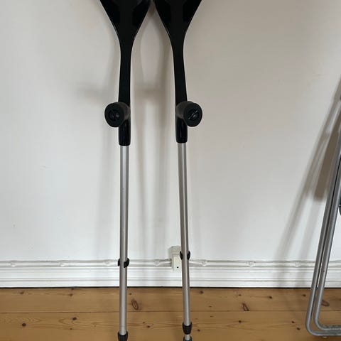 Enkelt god og solid højdejusterbar albuestok med behageligt greb og støtte. Reflekser forrest og bagest. Fra Handicare.