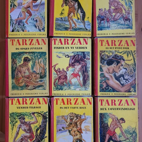 Tarzan , Frederik E. Pedersens forlag, 3 meget gamle og slidte Tarzan bøger - der er dog ingen løse sider og alle siderne er der tilsyneladende.