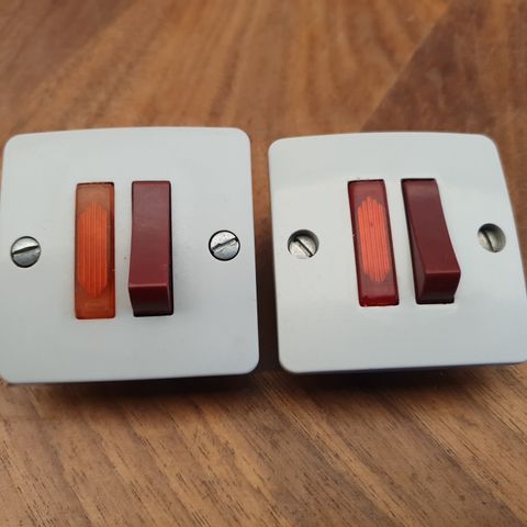 Vi har 2 stk. LK Smal minitangent tryk afbryder med i grå fra 1963. (afbryder med returfjeder, så kontakten går tilbage)