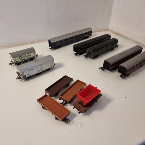 Perfekt stand alle med kkk (Kort Koblings Kulisse). Uden æsker. H0 DC hjul. 10% rabat ved køb af minimum 5 stk. Fragt 39kr uanset antal. Pris er pr stk.